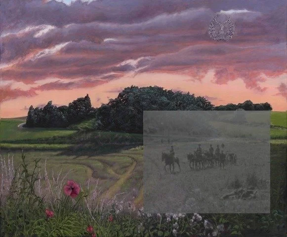 Painting of Mansel Copse overlaid with a Gordon Highlander K.I.A. from Malins’ film (Image IWM)